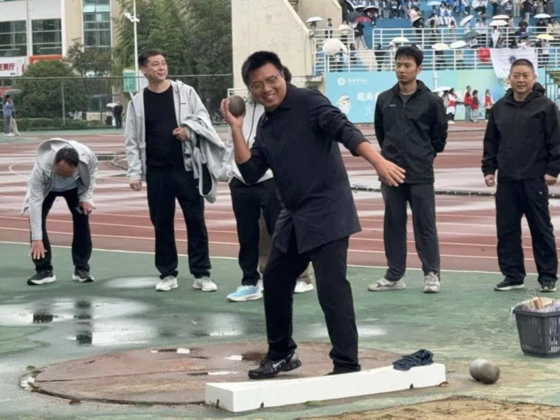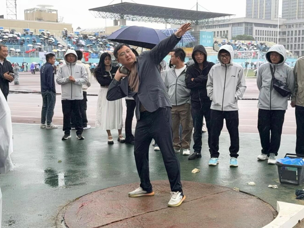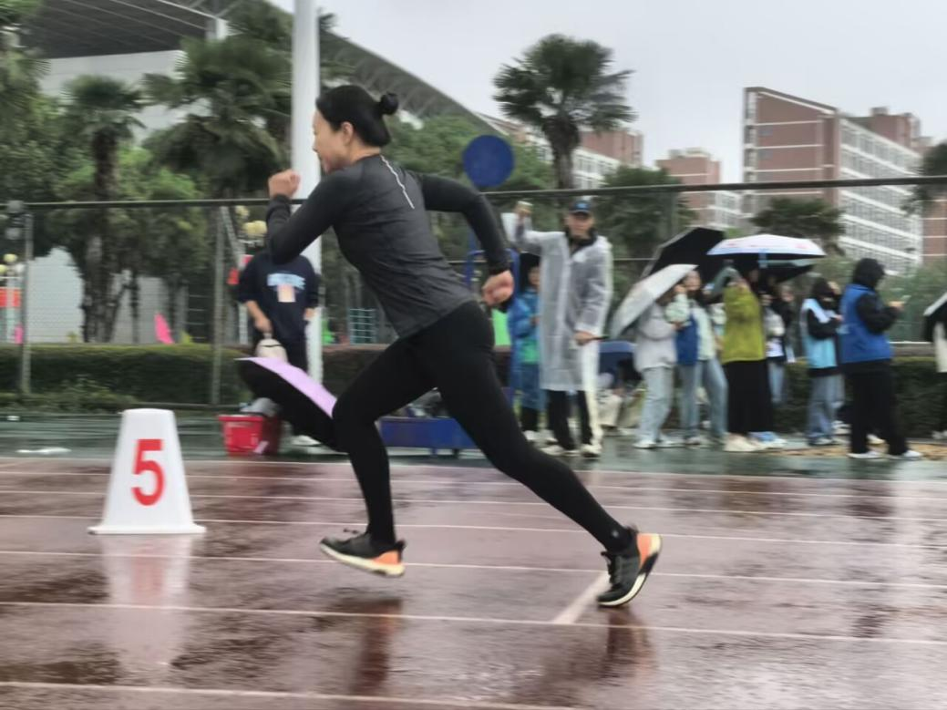 除了趣味项目中的精彩表现,田径赛场上也佳绩频传,即便冷风携雨洒落赛场,这份向前的坚定也从未动摇。本次运动会,我院教职工参与跑步、铅球和跳远等多个项目。其中,学院党委副书记黄侃老师和学院林祥松老师在中年男子铅球比赛中分别获得第十名和第十一名;学院裴锦程老师在青年男子铅球比赛中获得第七名;学院戴静雯老师在中年女子200米比赛中获得第二名。