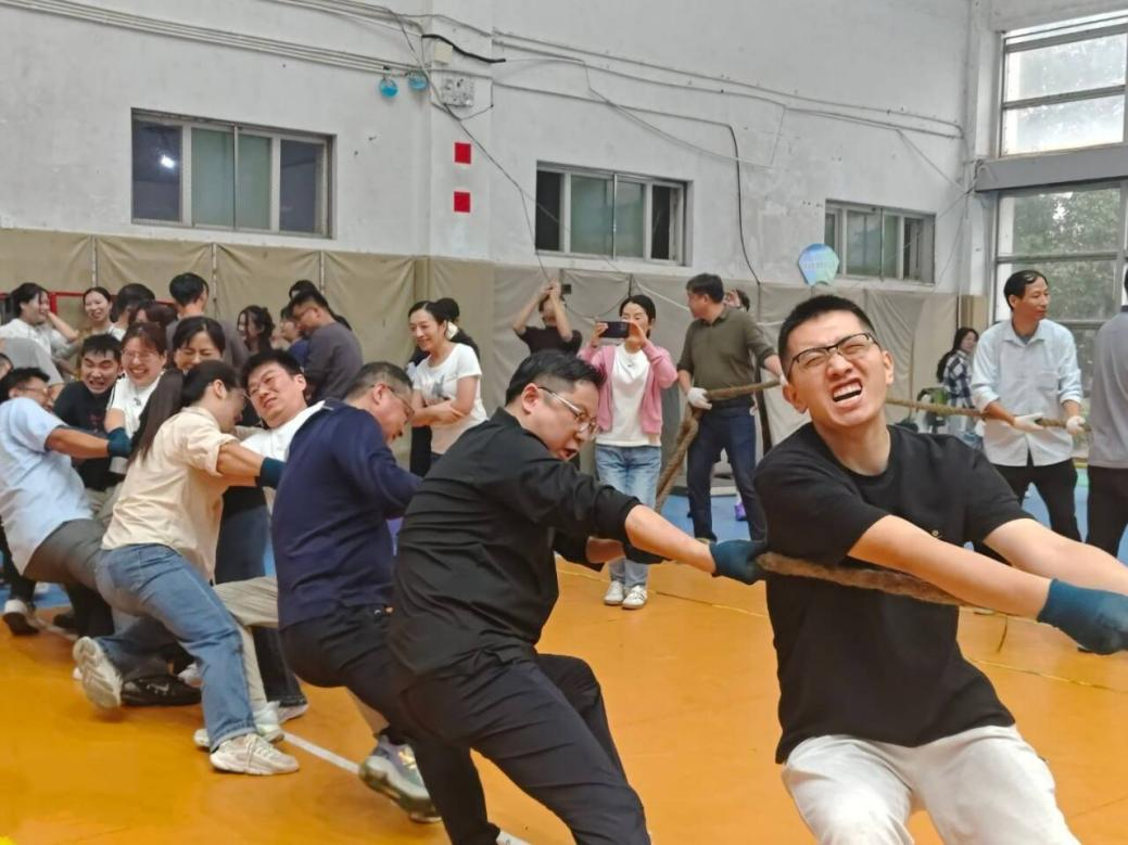 我院分工会组织教职工参加了趣味运动会中“勇毅前行”和“凝心聚力”两个项目,最终分别取得了第七名和第四名的好成绩。在勇毅前行项目中,老师们步调一致、配合默契,尽管偶有球掉落的小插曲,但大家迅速调整状态,坚持到底,赢得观众的阵阵掌声;“凝心聚力”拔河比赛现场更是热血沸腾,老师们紧握长绳,身体后倾,在一声声加油呐喊中齐心发力。每一次绳标的移动,都是力气的较量,更是团结精神的生动诠释。